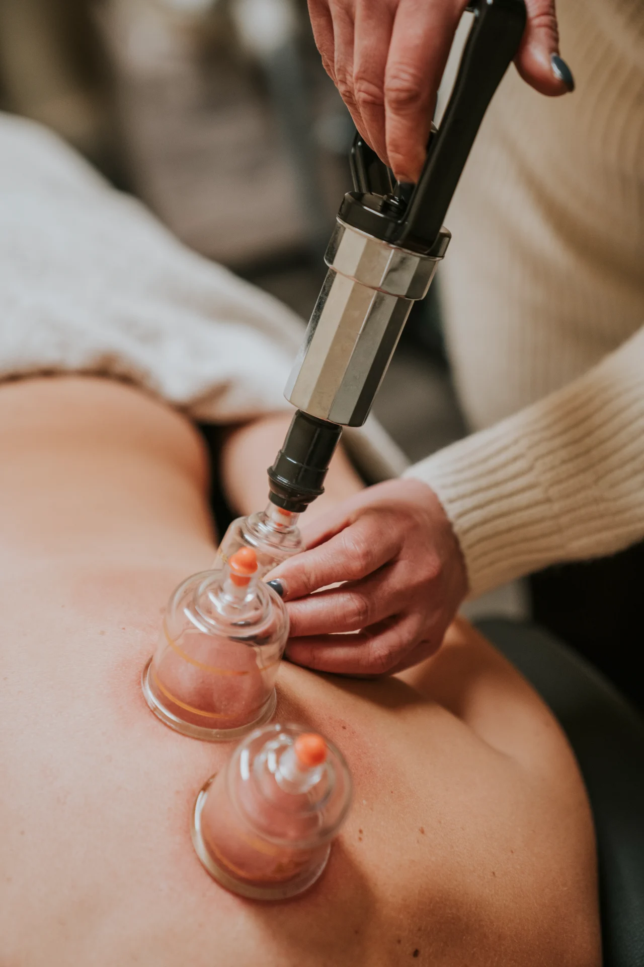 We gebruiken voor deze diepwerkende massage speciale siliconen of glazen cups die vacuüm gezogen worden op de huid. Hierdoor komt de huid omhoog in de cup en creëren we meer doorbloeding en afvoer van afvalstoffen in je spieren en bindweefsel.